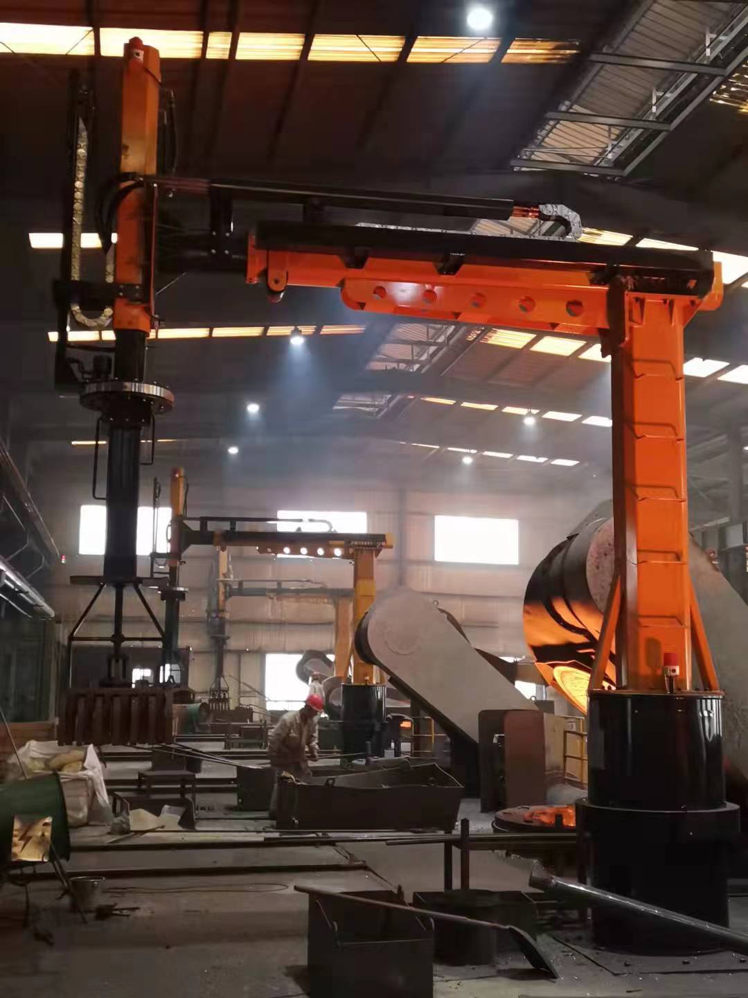 设备安装布置合理,结构采用高空悬梁结构,使炉周边作业空间开阔,减少磕绊造成的危险隐患,工作人员远离高温炉口通过遥控进行作业,避免因近距离作业造成的各种危险,因此安全性得到了有大的保障,并且大幅度减轻了作业人员的劳动强度。