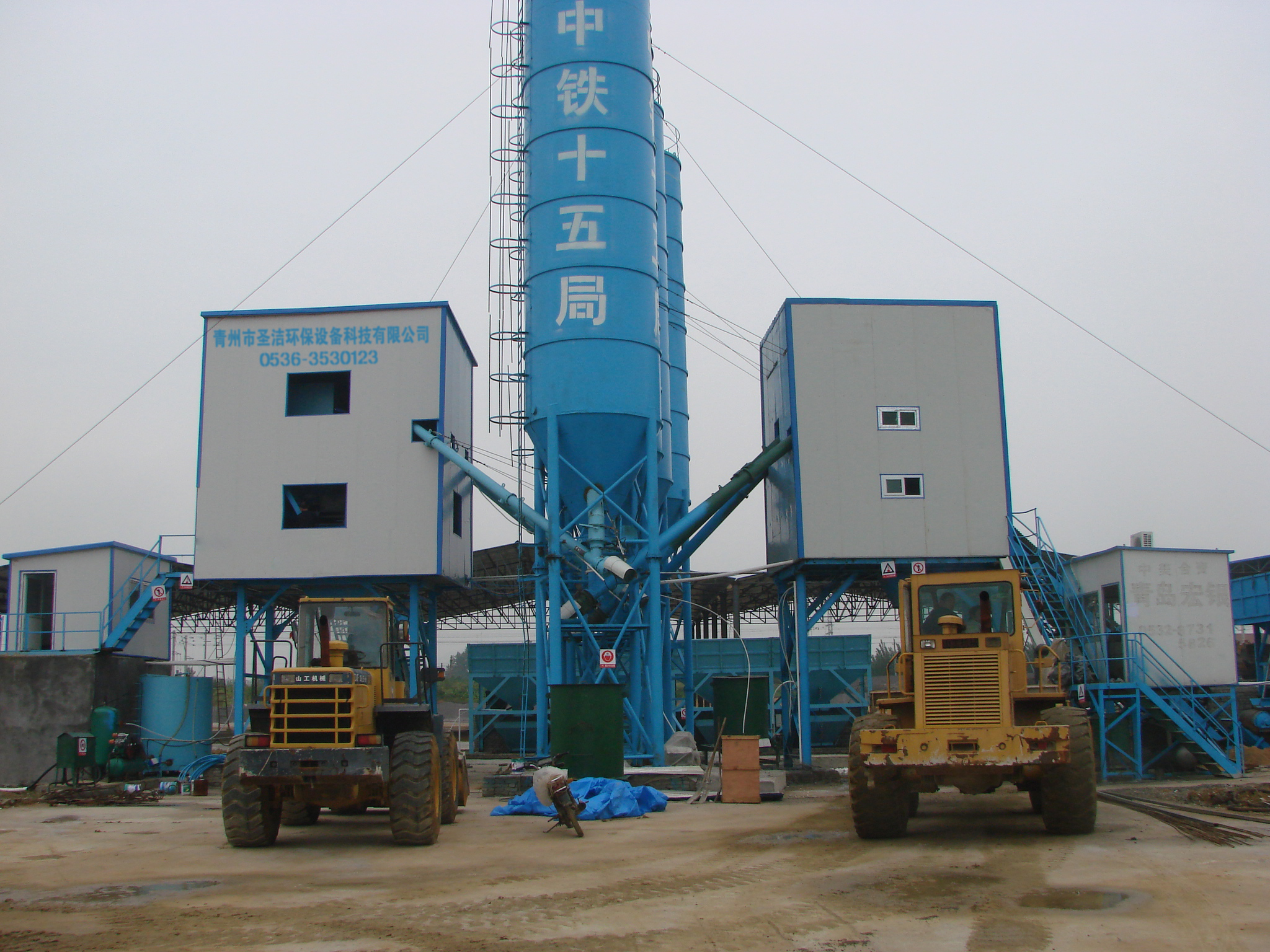 本站骨料采用装载机上料,四个大容积的料仓,可以同时储存四种不同骨料,电子秤计量。配有一个水泥仓和一个粉煤灰(或其他添加剂)料仓,由两条φ219螺旋输送机向计量斗中供料,水泥及添加剂采用电子秤累计计量。水由水泵供水,电子秤计量,出水口增加加压泵,保证了供水质量。外加剂由耐蚀泵供给外加剂电子秤计量。采用JS1000双卧轴强制式搅拌机作为主机,具有搅拌质量好、生产效率高、防噪音、防粉尘污染、环保等优点。电器采用计算机控制,具备自动、手动两种作业功能,完成配料、计量、投料、搅拌、卸料等全部程序过程。具有配比储存落差自动补偿,配有微型打印机,可打印每罐的配比。